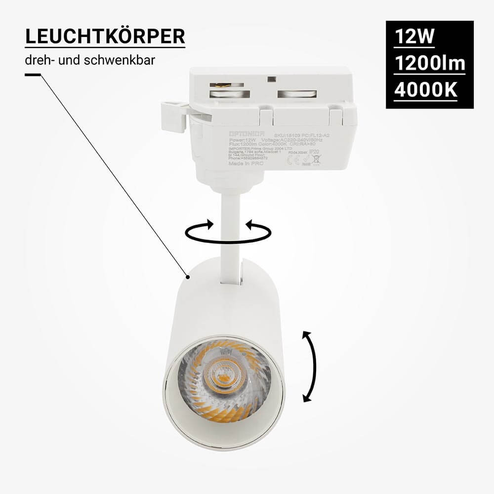 Lumière de Rail LED 12W 220V Bridgelux COB Chip Corps Blanc | Optonica LED