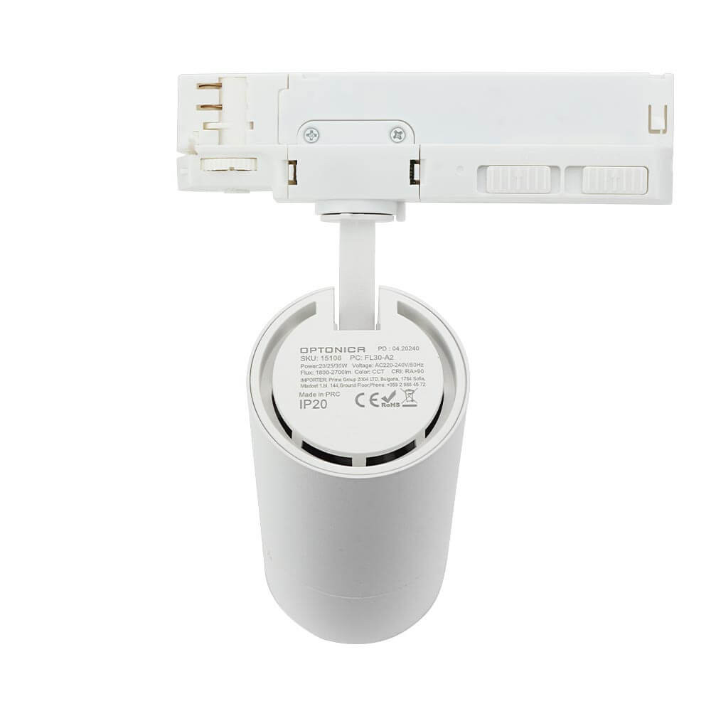 Lumière sur Rail LED CCT 20W/25W/30W BRIDGELUX - Corps Blanc Referrence 15106