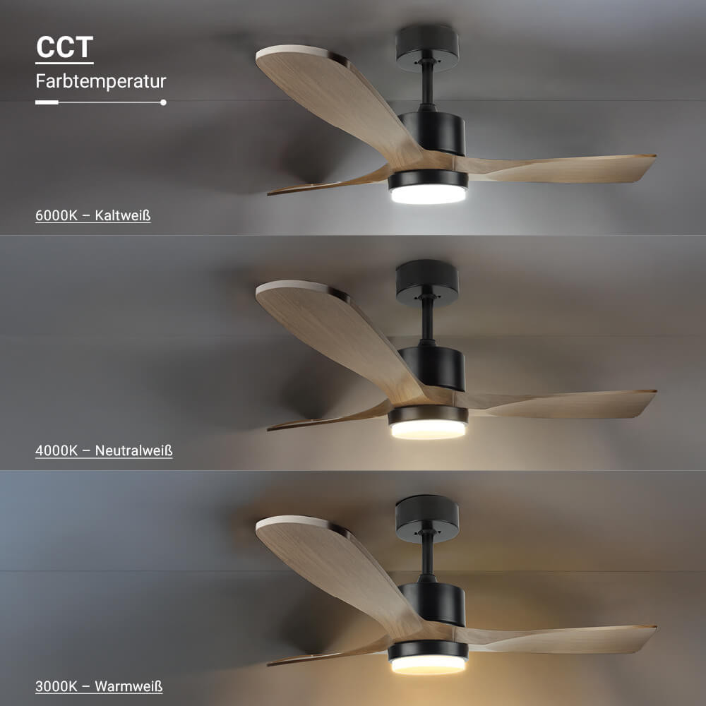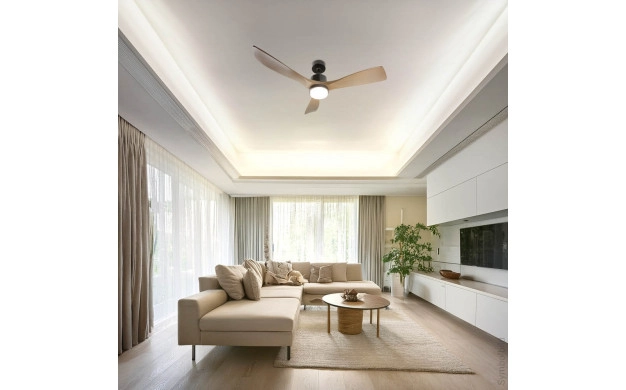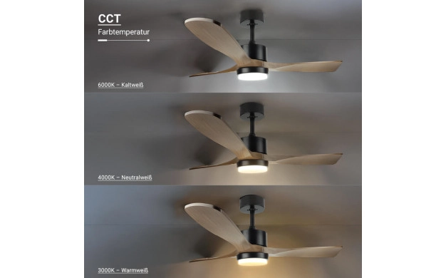 Ventilateur Eclairage LED 18W/3CCT Noir Bois + Télécommande Referrence 19110